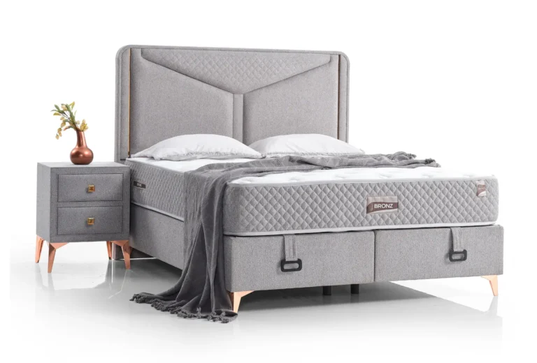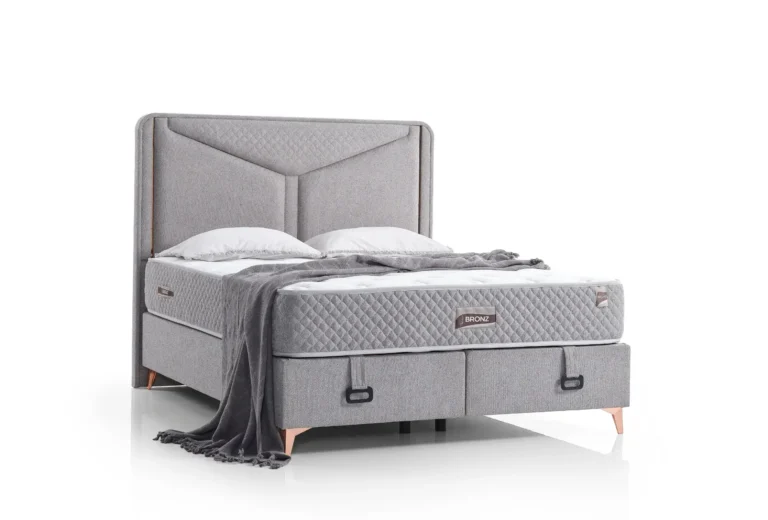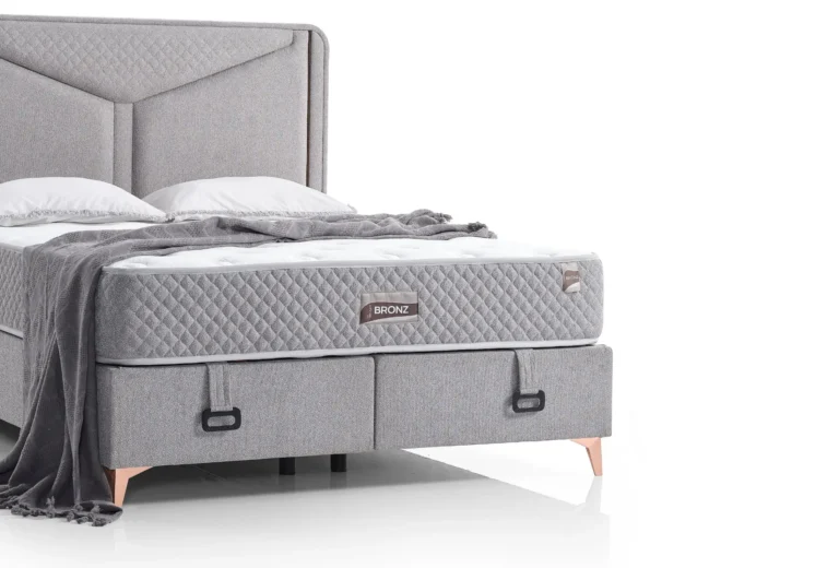 Bronze combines Hermes 19 fabric with a robust Bonnell spring system for essential spinal support. Its breathable structure provides thermal comfort and moisture balance throughout the night. With its minimalist design and unique bronze legs, it brings simple elegance to your room.