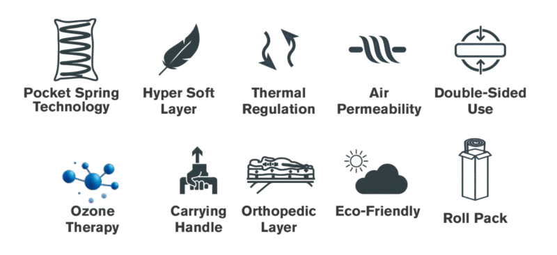 Featuring the hygienic Ozone Therapy fabric and independent pocket spring technology, Pandora offers a pure, breathable, and orthopedic sleep environment ideal for sensitive skin.