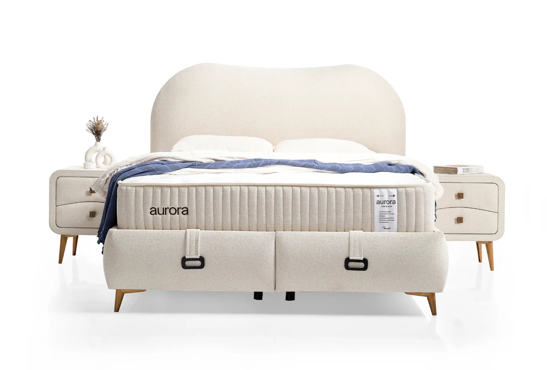 Aurora Doğal Kaşmir Yatak, size uyku deneyiminizde kişisel tercihlerinize göre esneklik sunar. Bir tarafı yumuşak ve rahatlatıcı, diğer tarafı ise sert ve destekleyici olarak tasarlanmıştır. Doğal kaşmir kumaşıyla kaplı olan bu yatak iki farklı sertlik derecesi, vücudunuza en uygun desteği sağlayarak mükemmel bir uyku konforu sunar.