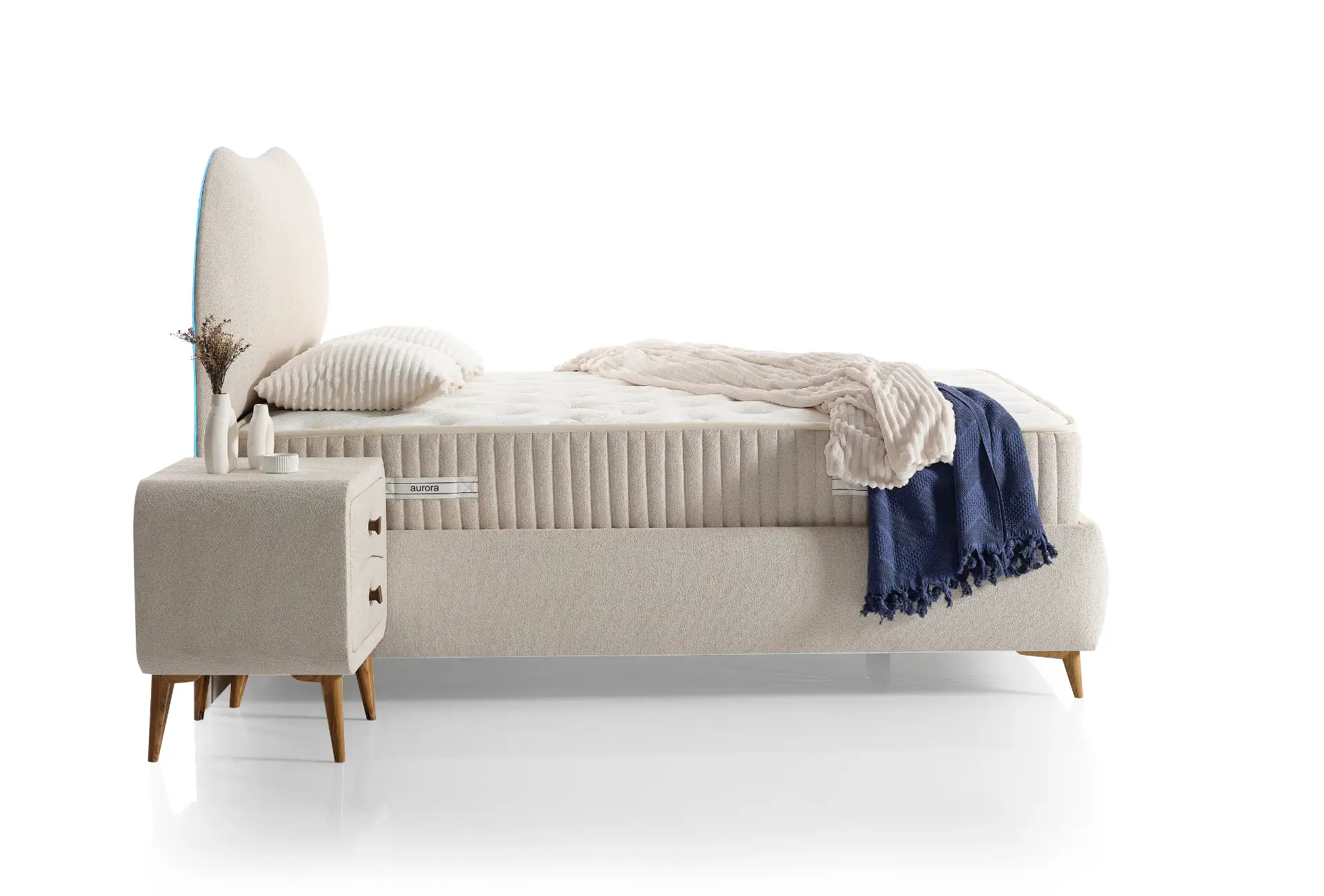 Make every night more special in the magical atmosphere of sleep. It transforms your bedroom into a first-class resting area with its elegant and functional design. Its pure and stylish design turns your living spaces into a calming visual experience. Its blue LED lighting creates a pleasant ambiance while sleeping or resting at night. Rediscover your bedroom and your sleep now.