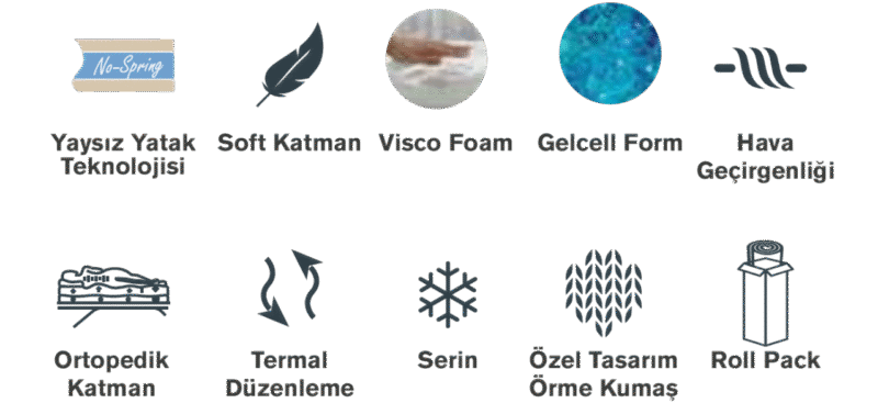 Visco Jel teknolojisi ve yaysız (No-Spring) yapısıyla vücut ısısını dengelerken, çift katmanlı hafızalı sünger desteğiyle eklem ağrılarını minimize eden üst düzey bir uyku yüzeyi sunar.